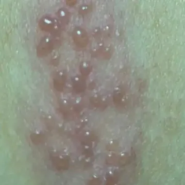 带状疱疹在皮肤上表现为红斑基底上的丘疹,水疱或脓疱样的外观,通常是单侧的,呈带状分布,不超过正中线,7-10 天后开始结痂,2-4 周内愈合。