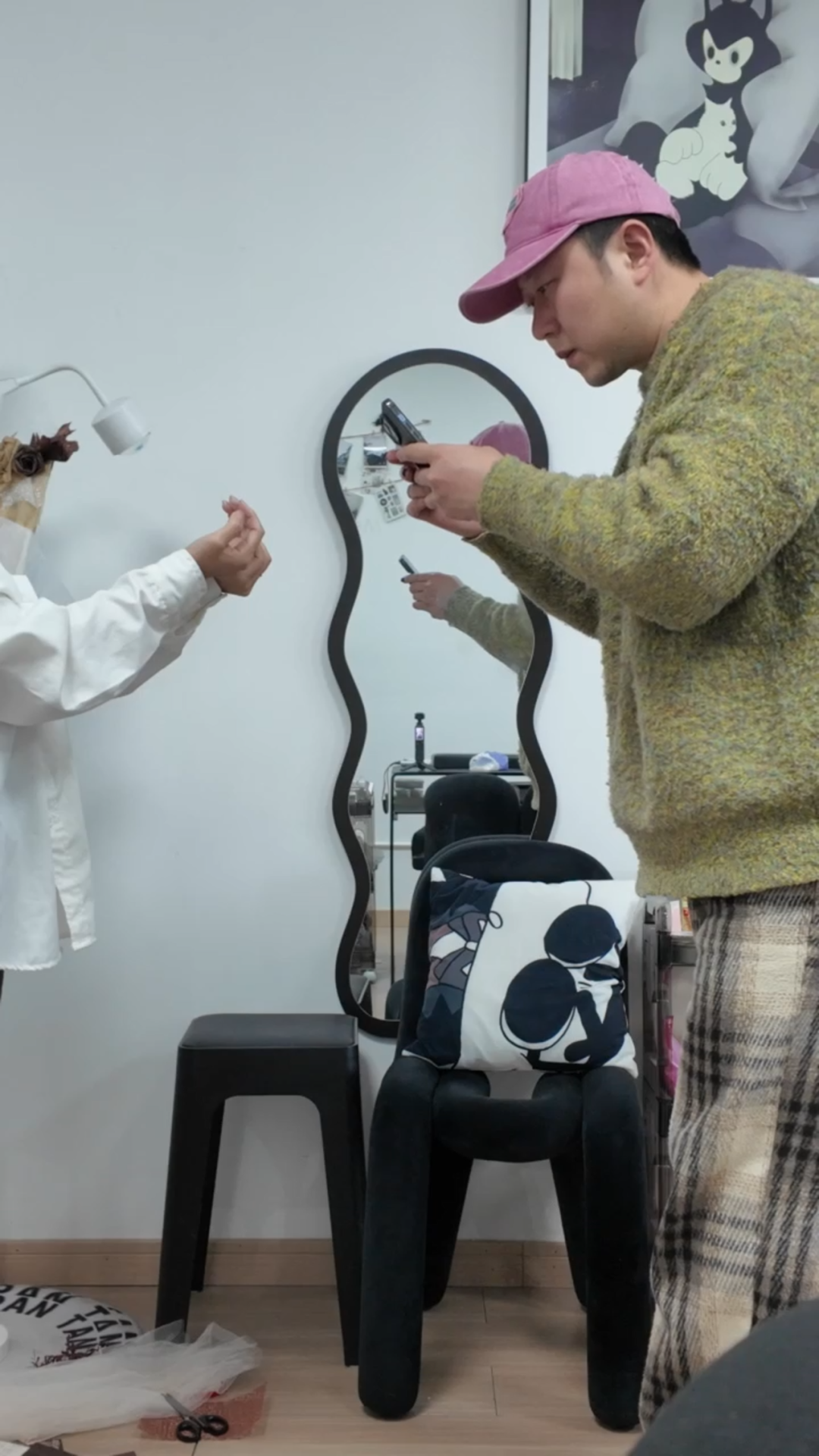 葛琪在创作拍摄美甲作品。受访者供图