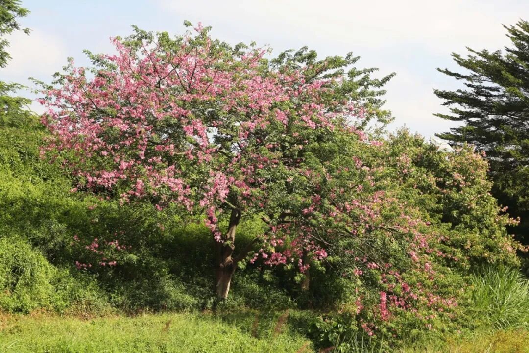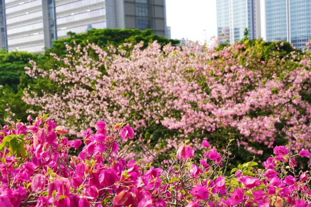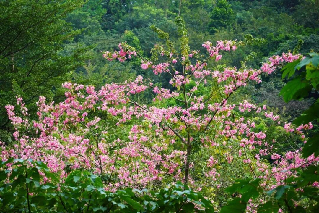 成串的粉色花朵压弯了枝丫